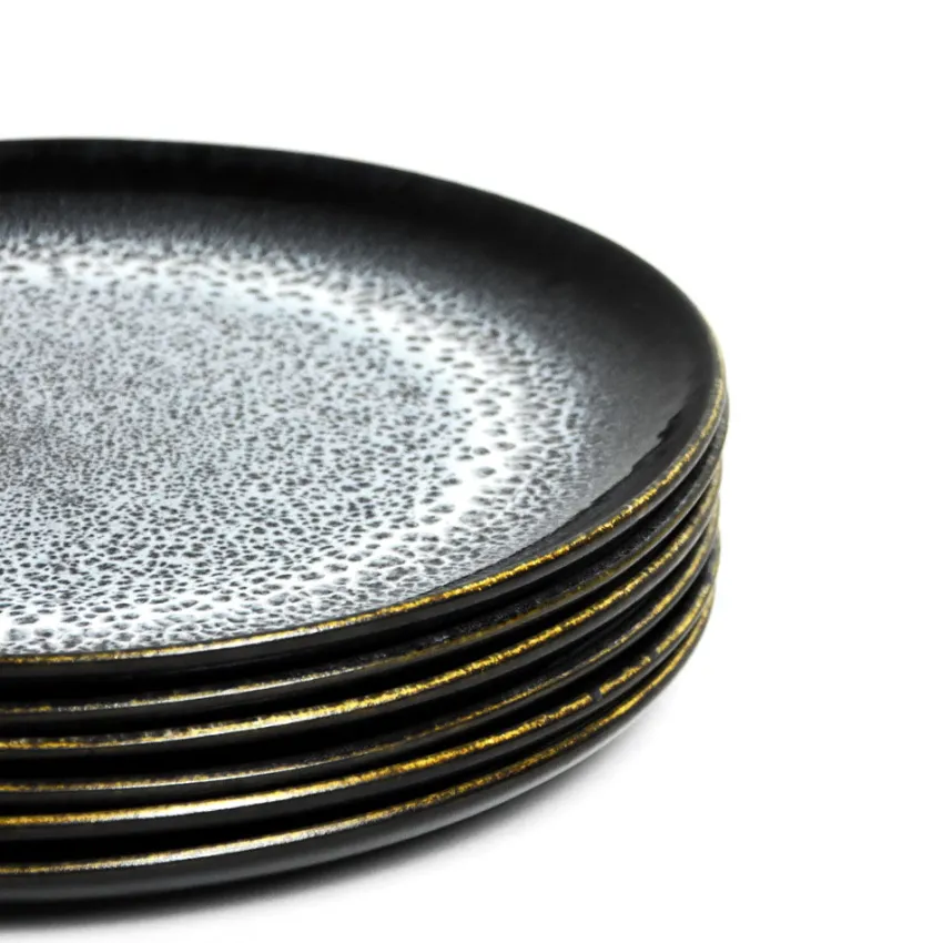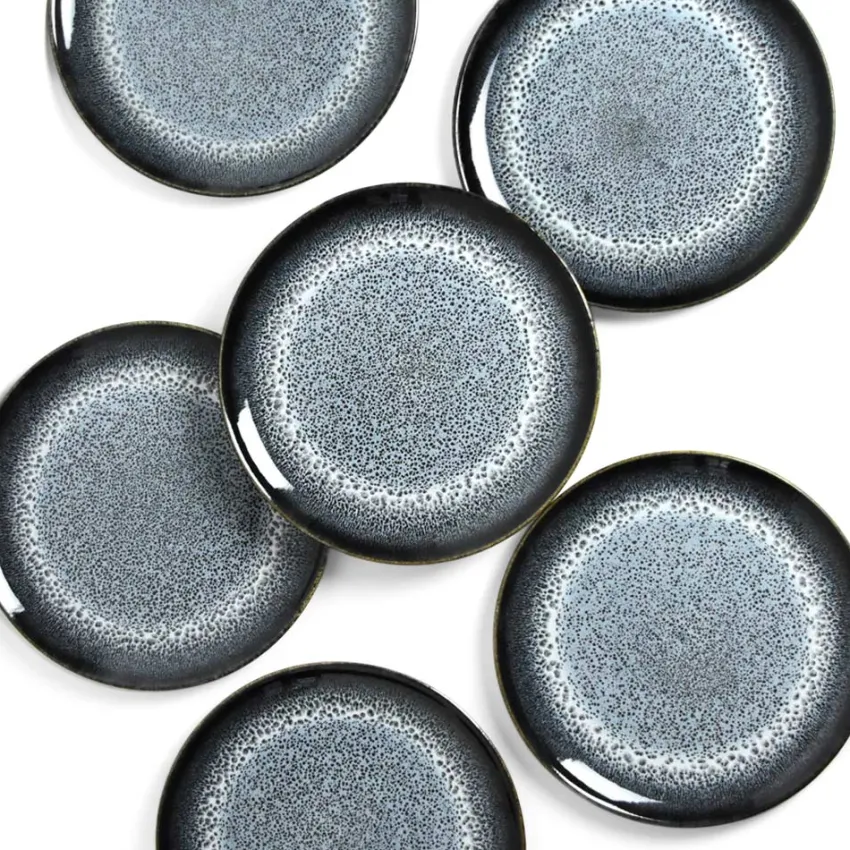 Émail : Un émail noir mat sur l’extérieur des pièces avec des effets réactifs blancs / bleutés brillants sur l’intérieur.