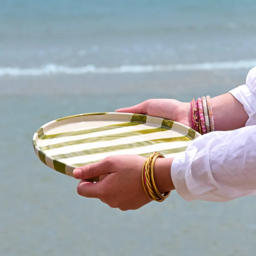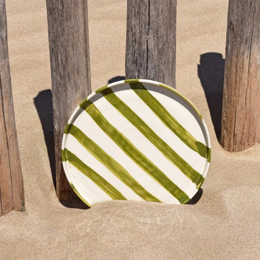 Avec ses rayures peintes à la main et ses lignes épurées, notre grande assiette invite à dresser de belles tables sans en faire trop. Elle accueille avec justesse un plat principal, une tarte salée ou un repas du dimanche. Une pièce qui fait toujours son effet, sans jamais voler la vedette à ce qu’elle sert.