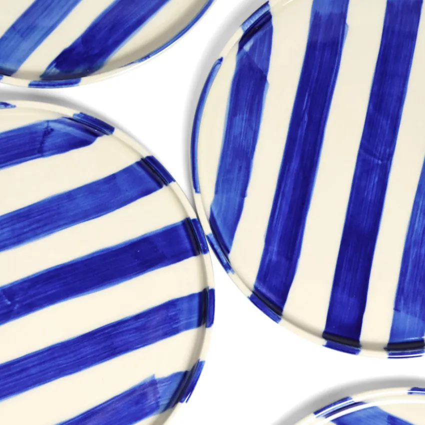 À l’heure du goûter, du dessert ou d’un déjeuner léger, la petite assiette Linhas trouve naturellement sa place. Ses rayures peintes à la main en font un basique pas si basique, à mixer ou empiler sans modération.
