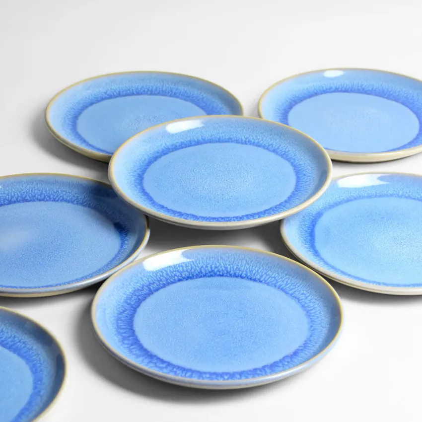 Émail : Un bleu profond, entre lapis et azur, qui prolonge l’été sur vos tables. Chaque pièce révèle des effets de matière uniques, entre éclat brut et douceur minérale.