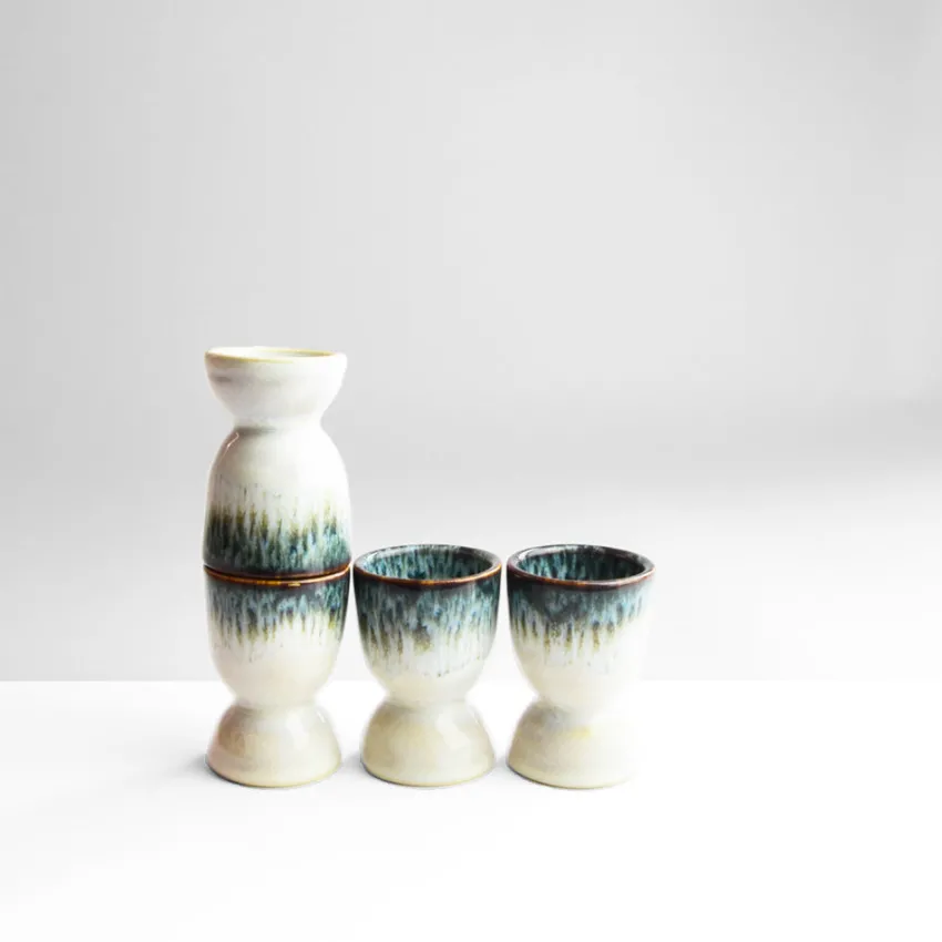 Émail : Un émail réactif appliqué par trempage laissant apparaître une coulure plus ou moins régulière. Les teintes de l’émail bleu verdâtre rappellent le rivage, le bleu de l’océan associé au beige / blanc des longues plages.