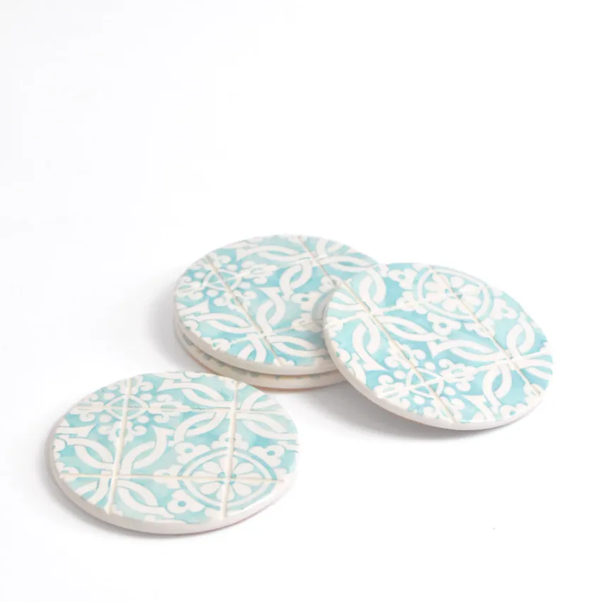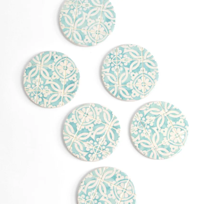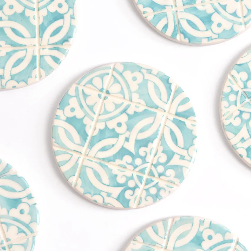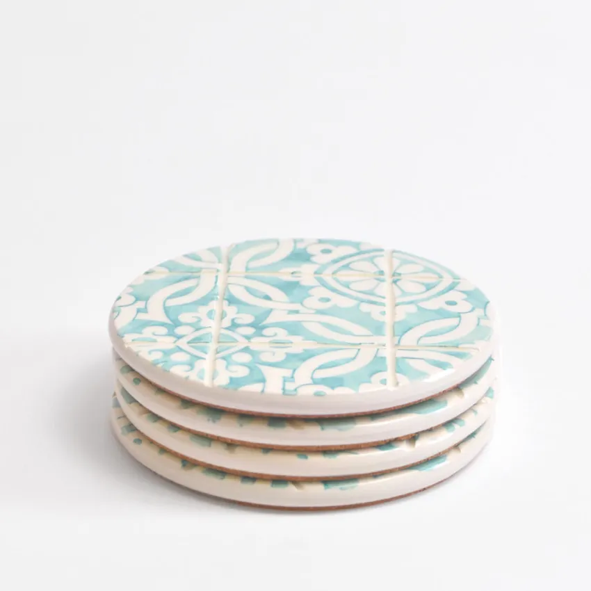 Inspirés du fameux carrelage portugais, ces dessous de verre ajouteront une touche de couleur à votre décoration tout en protégeant vos tables des boissons chaudes ou froides grâce à leur base en liège.