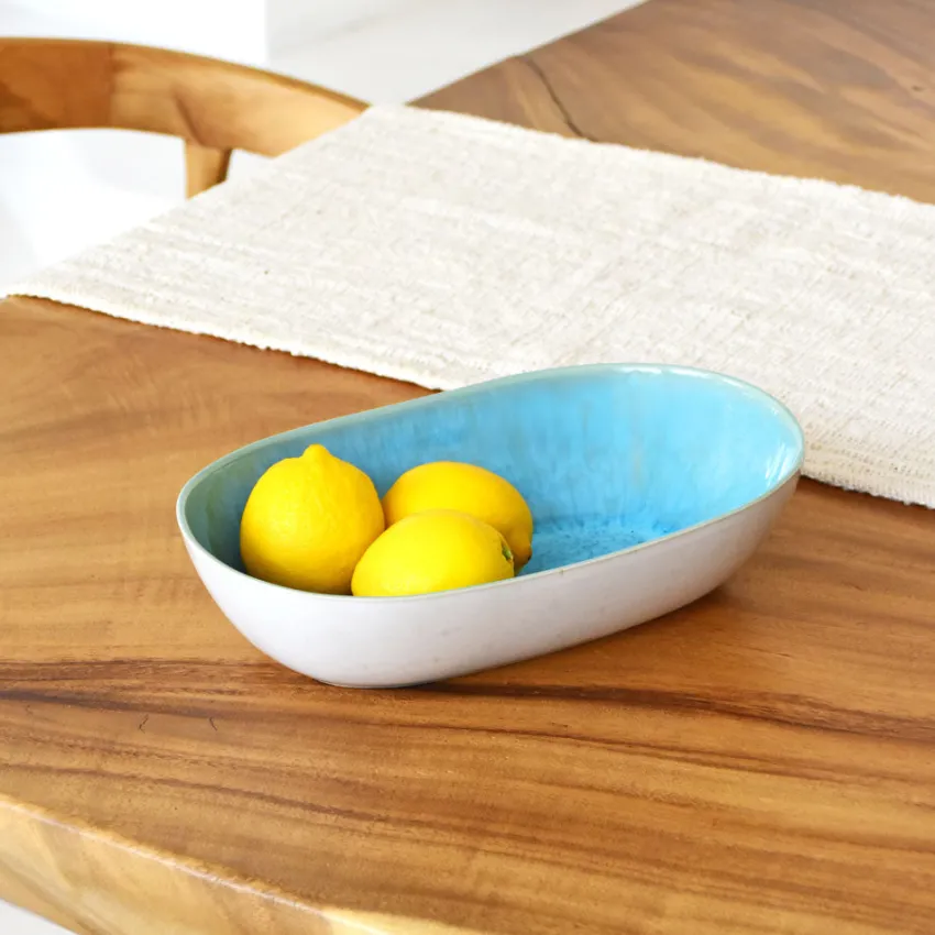 Avec son format allongé, ce plat en grès met en valeur tout ce que vous y déposez, comme un véritable bouquet de saveurs. Idéal pour présenter des légumes rôtis ou quelques fruits de saison au centre de la table, il ajoute une touche élégante à vos repas.