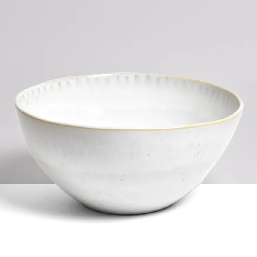 Un grand saladier en céramique tout en rondeur, parfait pour accueillir vos plus belles salades composées ou illuminer vos préparations gourmandes. Dans vos cuisines, en tant que corbeille à fruits, il vous donnera envie de faire un tour au marché pour le remplir de fruits frais et de légumes colorés.