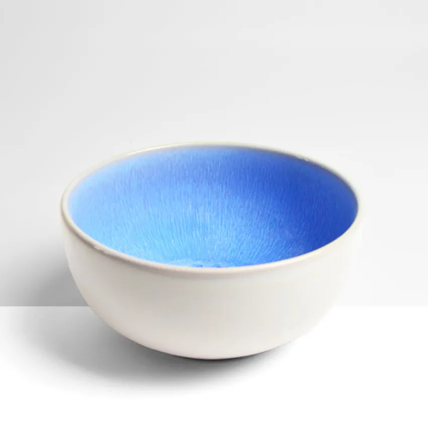 Émail : Un bleu profond, entre lapis et azur, qui prolonge l’été sur vos tables. Chaque pièce révèle des effets de matière uniques, entre éclat brut et douceur minérale.
