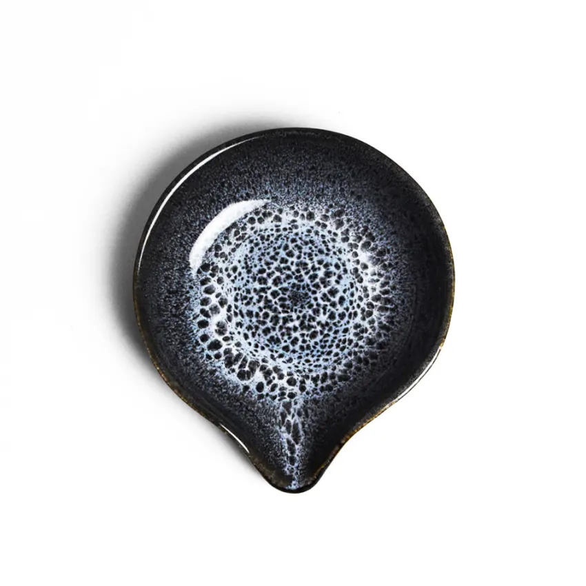 Émail : Un émail noir mat sur l’extérieur des pièces avec des effets réactifs blancs / bleutés brillants sur l’intérieur.