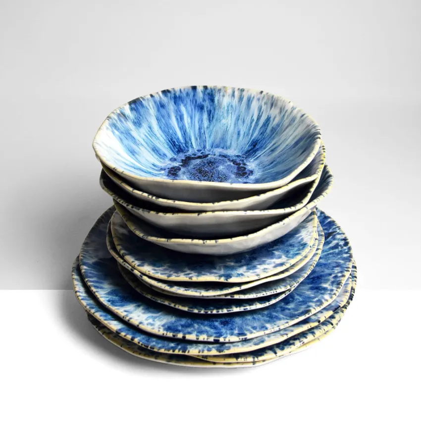 - 4x Grande assiette Onda | Bleu écume