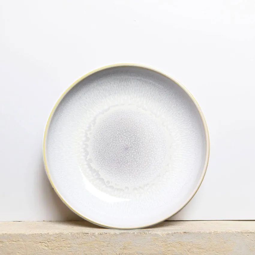 Émail : Blanc réactif aux reflets nacrés, qui tirent vers le rose lilas.