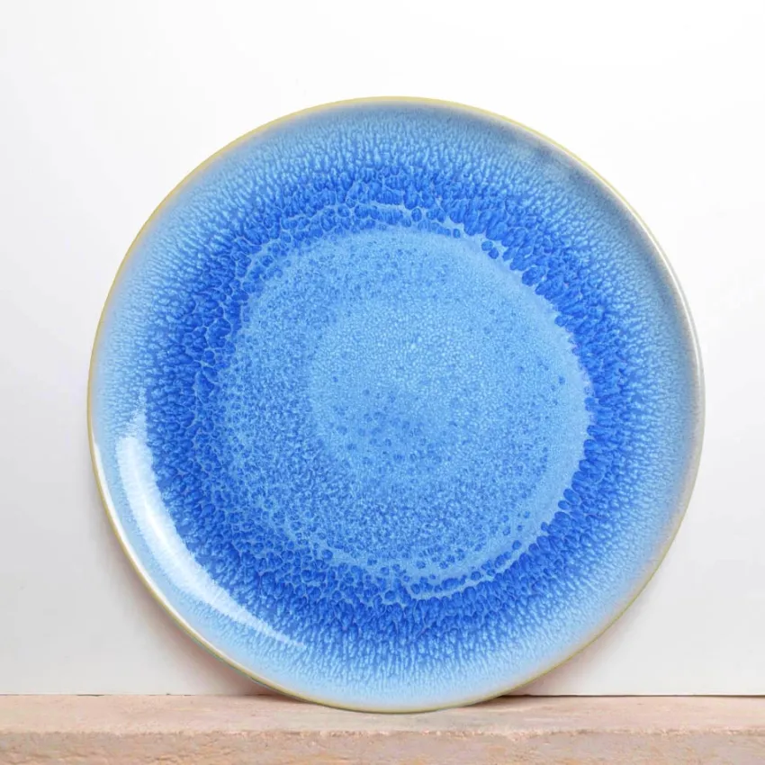 Émail : Un bleu profond, entre lapis et azur, qui prolonge l’été sur vos tables. Chaque pièce révèle des effets de matière uniques, entre éclat brut et douceur minérale.