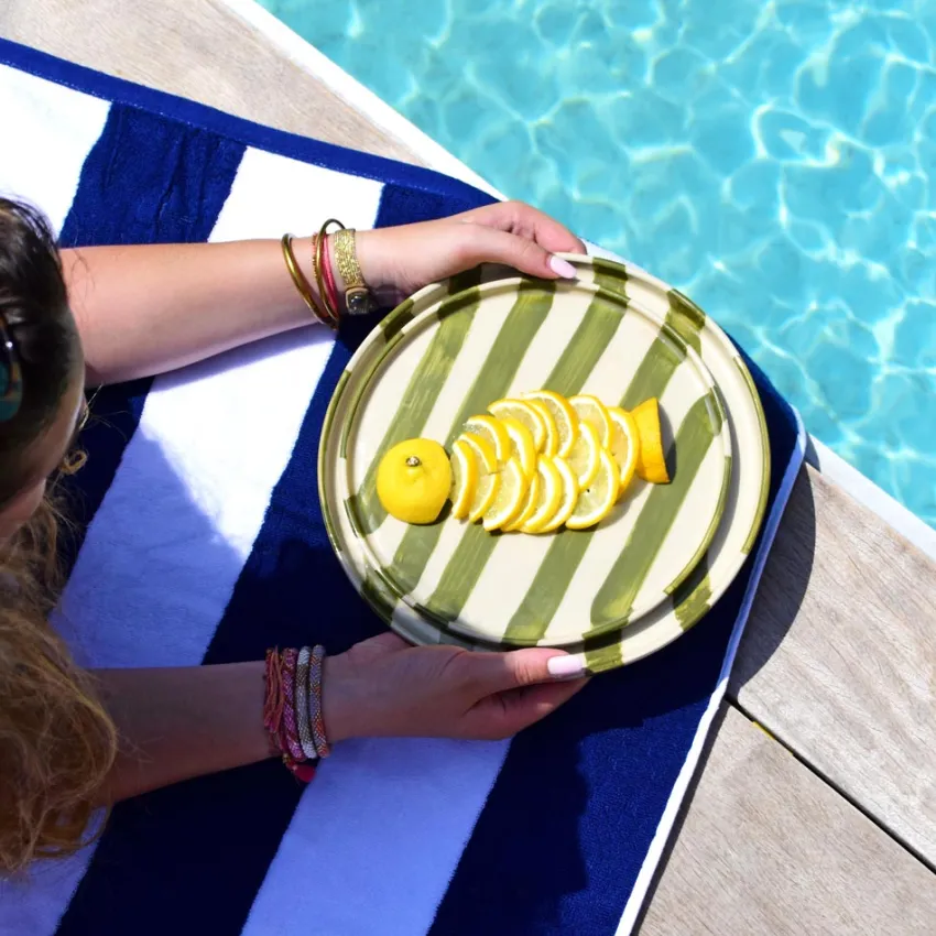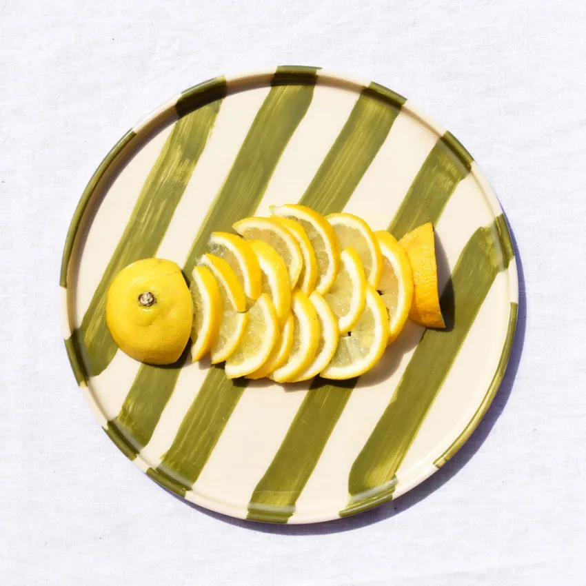 À l’heure du goûter, du dessert ou d’un déjeuner léger, la petite assiette Linhas trouve naturellement sa place. Ses rayures peintes à la main en font un basique pas si basique, à mixer ou empiler sans modération.