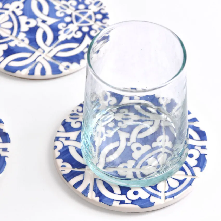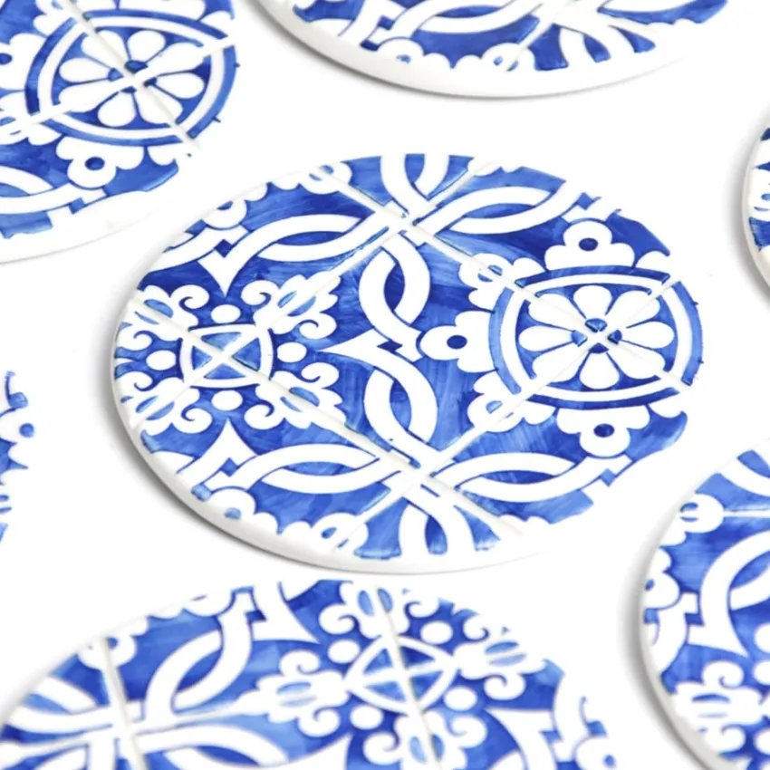 Inspirés du fameux carrelage portugais, ces dessous de verre ajouteront une touche de couleur à votre décoration tout en protégeant vos tables des boissons chaudes ou froides grâce à leur base en liège.