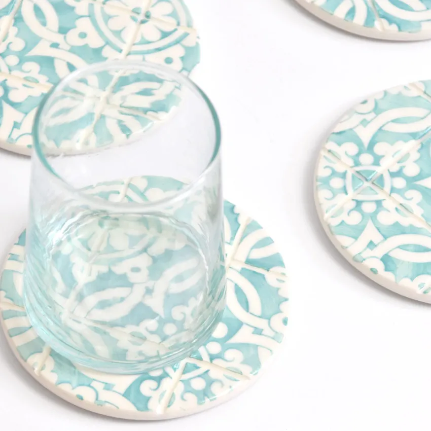 Inspirés du fameux carrelage portugais, ces dessous de verre ajouteront une touche de couleur à votre décoration tout en protégeant vos tables des boissons chaudes ou froides grâce à leur base en liège.