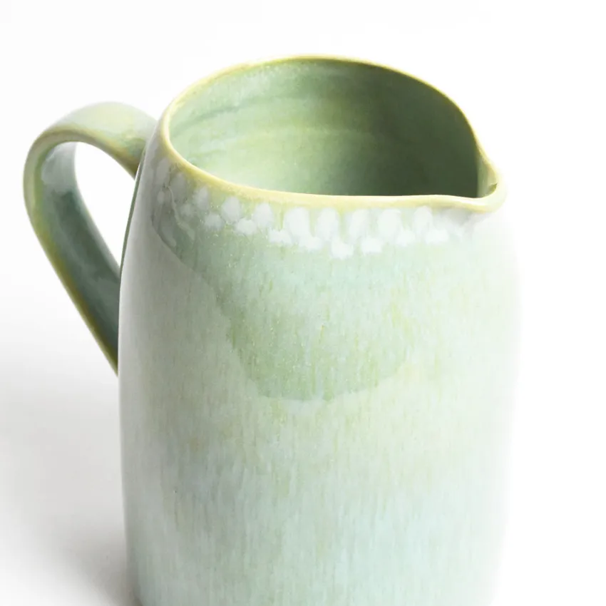 Émail : Vert audacieux, un émail vert clair réactif et légèrement moucheté, appliqué sur l’ensemble de la pièce. Les extrémités sont émaillées avec une pipette.