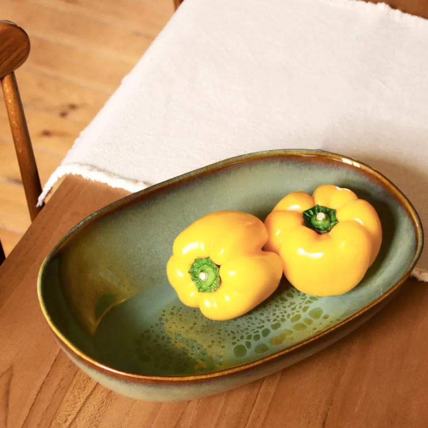 Avec son format allongé, ce plat en grès met en valeur tout ce que vous y déposez, comme un véritable bouquet de saveurs. Idéal pour présenter des légumes rôtis ou quelques fruits de saison au centre de la table, il ajoute une touche élégante à vos repas.