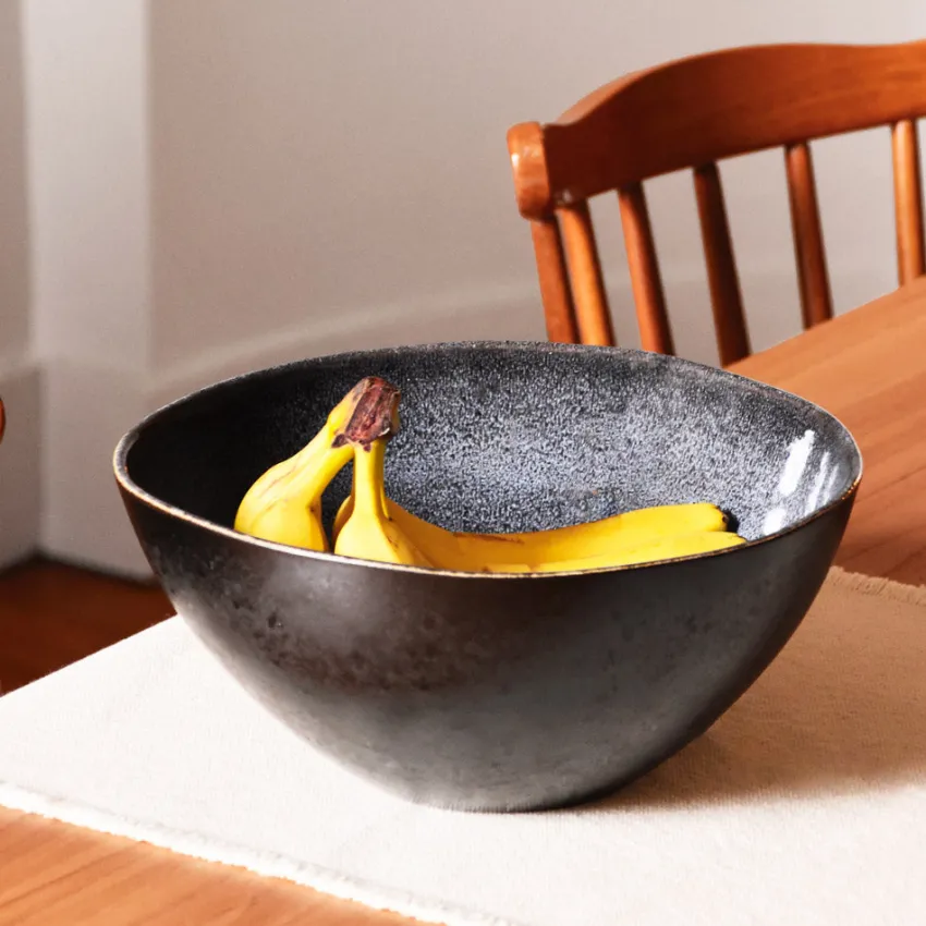 Émail : Un émail noir mat sur l’extérieur des pièces avec des effets réactifs blancs / bleutés brillants sur l’intérieur.