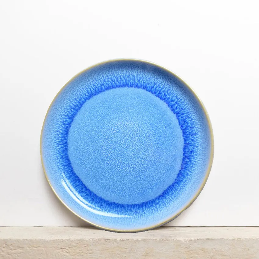 Émail : Un bleu profond, entre lapis et azur, qui prolonge l’été sur vos tables. Chaque pièce révèle des effets de matière uniques, entre éclat brut et douceur minérale.