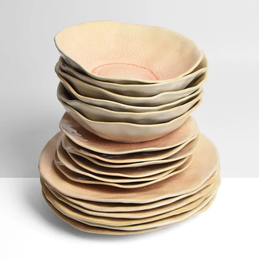 Chaque pièce réagit différemment à la cuisson, des nuances d’aspects peuvent apparaître lors de la production rendant chaque pièce unique.