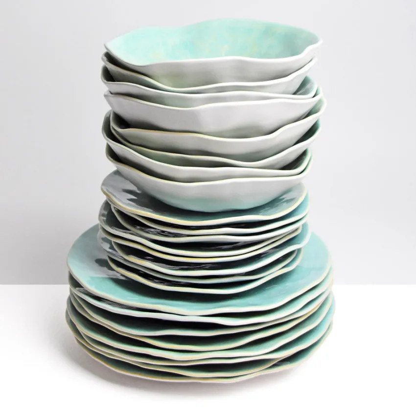 - 8x Grande assiette Onda | Vert d’eau